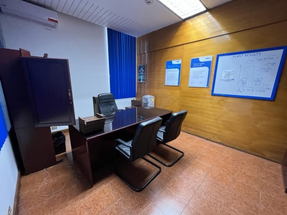 26 oficinas, 5 salas de juntas, enfermería, área de ingeniería, laboratorio, archivo muerto, área de bombas contra incendio, área de oficinas con área de baños.
