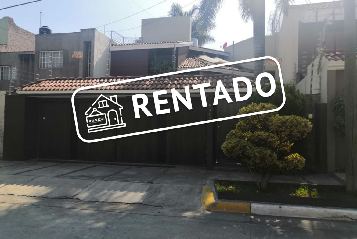 Casa en renta a dos cuadras de Plaza Galerías en Zapopan Jalisco. Con jardín y terraza, bodega y medio baño, 3 recámaras, estudio, cochera para tres autos, sala y comedor, medio baño de visitas, bodega, cuarto de servicio con baño, área de lavado con tendedero, cocina, medio baño, estar de TV, recámara principal con vestidor y cuarto de meditación con baño completo, dos recámaras con closet y un baño completo. paneles y celdas solares.