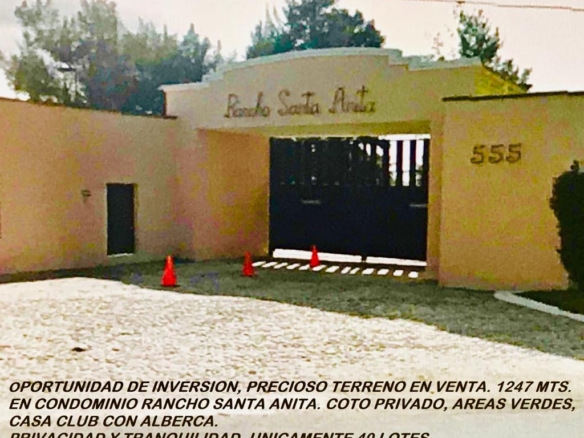 Excelente Terreno en venta dentro del Coto Rancho Santa Anita, de tan solo 40 lotes.