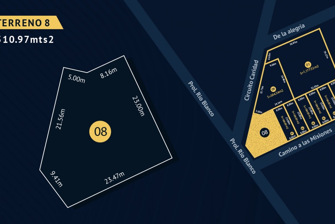 El Terreno está sobre un Terreno de 3,350 mts2 USO MIXTO COMERCIAL sobre Avenida Río Blanco Zapopan, Jalisco. SE VENDE COMPLETO O EN PARTES, en éste caso, el No 08 es PARA LOCAL COMERCIAL EN ESQUINA.